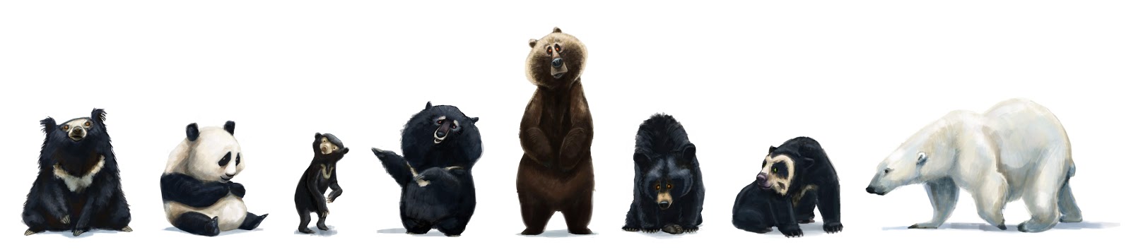 So here I present a few fantastic images sourced from all around the internet (all rightfully the property of their creators) that show the recognised species of various animal families (my favourite is the bears, let me know yours in the comments?). Many of these have got to be appreciated from an artistic perspective, having involved a talented individual who has captured the morphology and colourations of the species in question. When it comes to creations like these, illustrations definitely work better than photographs.